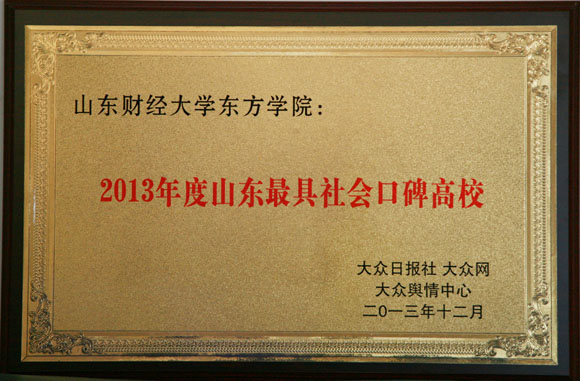 (通讯员 聂圣军)12月27日上午,由大众报业集团大众网主办的2013年度山东教育舆情研讨会暨年度口碑高校榜发布会在济南举行。会议公布了2013年度山东省口碑高校榜获奖名单,我校荣获“2013年度山东最具社会口碑高校”荣誉称号,为获此殊荣的10所高校中唯一一所独立学院。