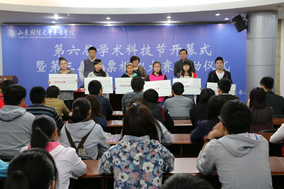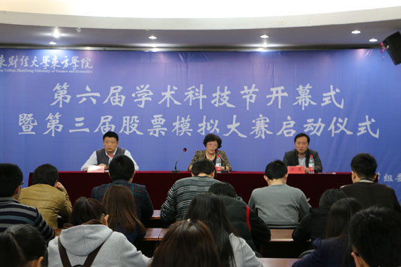 学团工作处处长江东宣读了本届大学生学术科技节的实施方案,并对本届大赛开展的活动进行了说明。要求各系部和承办单位认真组织,搭建好培育和锻炼人的基地,鼓励广大同学们积极热情参与。随后,各位领导代表学校向参加本届股票模拟大赛的同学授予启动资金。