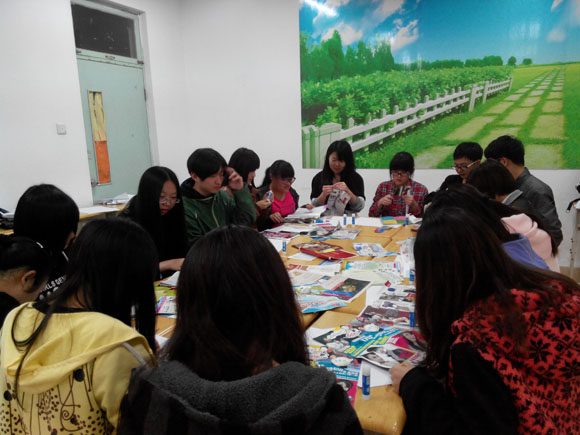 工作坊的第一环节是“找动物朋友”,同学们拿着动物卡片,为它寻找朋友,在欢快的音乐声中,大家找到了自己的“动物朋友”,相互交流认识。在“画出你的心情”活动中,同学们体验到了绘画能够表现出比语言更为丰富和充分的心理内容,这一活动触发了同学们用绘画的方式来表达情绪的兴趣。随后,在舒缓的音乐声中,心理老师带领同学们做“心情印记”,在画纸上,用各种颜色和图案自由地表现自己的所思所想。