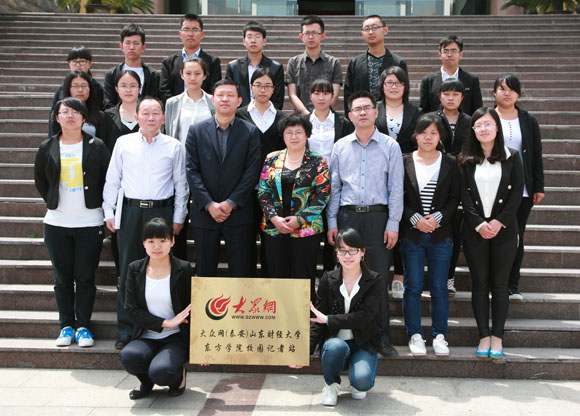 (大学生记者团 孙艳珩)5月14日,大众网(泰安)首家高校网媒记者站在我校正式成立。该站由大众网泰安站和我校共同组建,分党委副书记宫淑瑰与大众网泰安站站长陶云江为记者站授牌。人文艺术系主任牟雷、副主任吕洪智、宣传中心副主任聂圣军及记者站全体成员参加仪式。