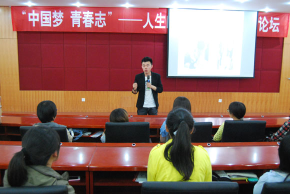 李海召同学以 “你只管追求卓越,成功不请自来”为主题,讲述了自己的成长经历。因自幼患小儿麻痹症,在成长过程中,他遭受到各种异样的眼光和嘲讽,面对学习挑战和生活的艰难,李海召选择坚持,克服精神压力,挑战自我心理,逐渐地从自卑和孤独中走向成功。一张乐观自信的笑脸,一个坚持不懈的信念,一种纯净宁静的心态,才铸就了他今天的成功,最后取得了优异的考研成绩。