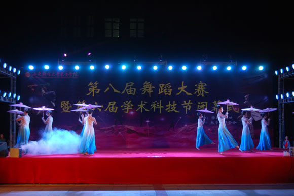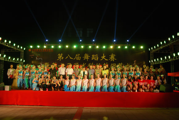 (通讯员 张颖)为丰富广大学生的课余文化生活,创建我校校园文化的品牌活动,由学团工作处主办、院学生联合会承办的第八届舞蹈大赛暨第六届学术科技节闭幕式于6月11日晚7点30分在东方广场举行。分党委副书记宫淑瑰、学团工作处处长江东、副处长赵滨出席本次大赛,泰安市广电艺术团舞蹈创编主任陈伟、泰安市歌舞剧院舞蹈编导吕桦琳、山东省舞蹈家协会理事范垚、学团工作处文体部部长张颖、学团工作处创业中心主任赵鑫担任大赛评委。
