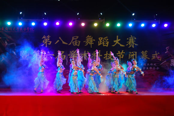 经过初赛激烈的选拔,共有13支队伍进入了决赛。在劲爆的的开场舞中,大赛正式拉开帷幕, 从柔美到动感,不同类型不同形式的舞蹈为现场观众带来了一场视觉的盛宴,演员们用各自不同的风格诠释了对舞蹈的热爱,使观众们充分感受到了舞蹈的魅力。院学生联合会带来的爵士舞《甜心轰炸机》热辣火爆,舞出了青春的活力;人文艺术系的《雪中梅》舞者用那灵动的舞姿,舞出了纯洁的灵魂。院学生联合会的《小城雨巷》,一群温婉的江南女子翩翩走来,柔美的倩影朦胧飘渺,把观众带入了如画般的江南水乡;财政金融系的《天堂草原》展现了一群蒙古汉子的勇敢与豪放,强大的气势震慑全场;会计学系带来的《喜鹊喳喳喳》,演员们用每一个眼神,每一个动作形象描绘了一群喜鹊的灵动。比赛期间,领导及评委老师对在第六届学术科技节中获奖的选手颁发了荣誉证书。