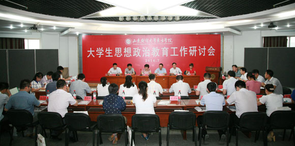 (通讯员 刘璞)7月10日上午,我校在坤元楼多功能厅召开2014年大学生思想政治教育工作研讨会。分党委副书记宫淑瑰、学团工作处处长江东、基础教学部主任高风、副主任林玮玮出席会议,学团工作处全体人员、全体辅导员、思政教研室全体成员参加会议。会议由学团工作处副处长赵滨主持。