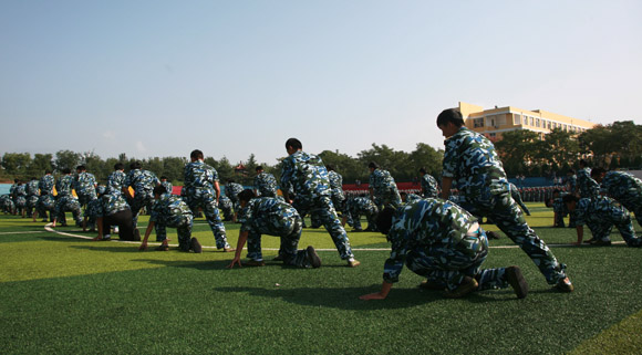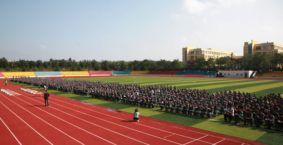 (大学生记者团)朗朗金秋,丹桂飘香。9月29日上午,我院2014级新生开学典礼暨军训汇报表演在运动场隆重举行。院长、党委副书记高立明,党委书记、副院长宫淑瑰,副院长杨子华,武警泰安市支队大队长李健,院属各部门、单位的负责同志在主席台就坐。大会由宫淑瑰主持。