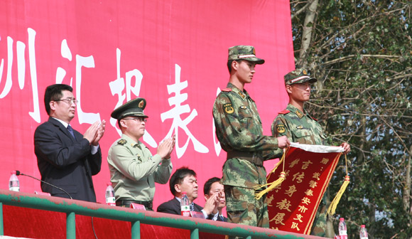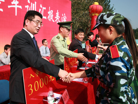 副院长杨子华宣读入学奖学金名单。2014级新生军训团政委、学团工作处处长、武装部部长王伟同志宣读军训表彰决定。优秀新生入校奖学金获得者、军训先进个人代表、军训内务先进个人代表、军训先进班级代表先后上台领奖。
