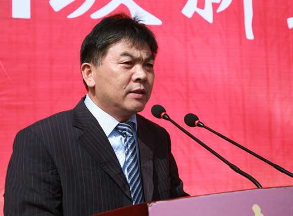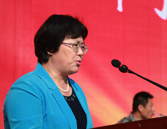 院长高立明向承训部队武警泰安市支队赠送锦旗。新生代表财政金融系王慧同学、老生代表人文艺术系徐康同学、教师代表郭宁老师分别发言。