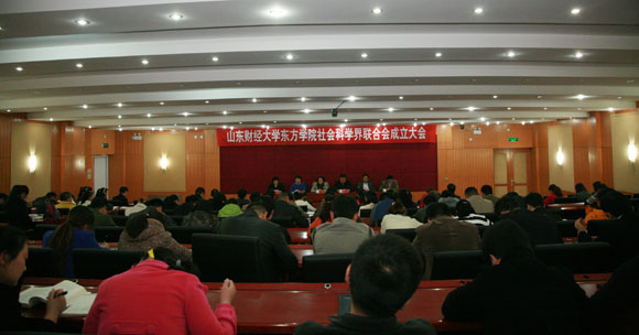 孙淑娜副主席代表省社科联对我院社科联的成立表示热烈祝贺。她指出,山东财经大学东方学院社会科学界联合会的成立是我院哲学和社会科学研究的一个新起点,是我院哲学社会科学工作者的一大喜事,也是全省社科界组织建设发展中的一件大事。近年来,山东财经大学东方学院在学校党委的正确领导下,人文社会科学学科建设成绩显著,学校已经具备了做好社科联工作,进一步繁荣发展哲学社会科学的良好基础和有利条件。希望大家以社科联的成立为契机,与省市社科联进一步加强联系,扎实工作,勇于创新,为推动全省经济社会发展和社会科学繁荣做出新的更大的贡献!