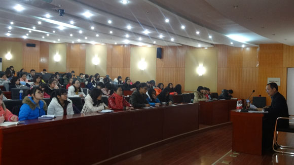 彭行长首先用“‘教’是为了‘不教’,‘学’是为了‘不学’”来概括自己对学习的感悟,肯定学习金融知识的重要性,认为大学的会计金融知识令他受益匪浅。随后,彭行长从“经济新常态”、“企业融资难融资贵”、“企业担保圈风险”和“我国金融体系和金融监管”当下四个金融运行的热点问题进行阐述。通过“旧常态经济”与“新常态经济”的比较表明当前我国仍处于重要战略时期,应当保持平常战略心态面对国际经济形势;借用走访150家小微企业得出的调研结果来揭示“融资难与融资贵”的根本原因是企业自身存在缺陷;运用“长星集团企业联保危机”等案例来介绍担保圈的形成以及如何破解担保圈风险的措施。最后彭行长向同学们展示了银行面试的经典面试题并且结合自己的就业感受提出中肯的建议,他希望同学们能够在大学期间掌握专业知识,提升能力,仰望星空,脚踏实地。彭行长幽默的言语,独特的见解赢得现场阵阵的掌声。