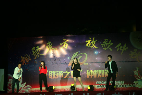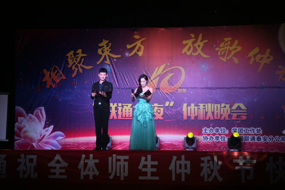 (学生通讯员 孙雯)海上生明月,天涯共此时。9月27日晚,伴着中秋明月,由学团工作处主办的2015“联通之夜”仲秋晚会在东方广场举行。我院党委书记宫淑瑰、泰安联通校园服务中心总经理杨阳、2015级新生军训团团长、全体军训教官、学团工作处工作人员、各系辅导员以及2015级全体新生参加晚会。