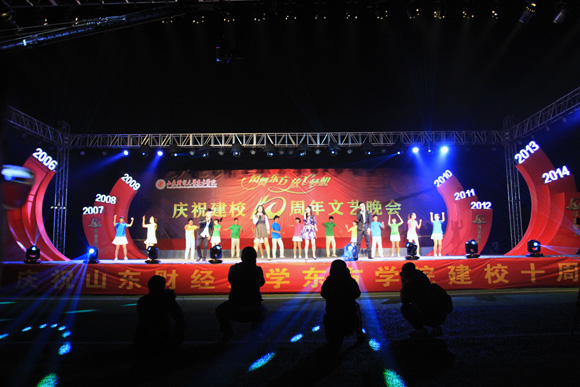 山东科技大学副校长兼泰山科技学院院长王少鹏,泰山医学院副院长彭春雷,山东财经大学副校长綦好东,山东财经大学党委办公室主任、东方学院原常务副院长徐思生,山东科技大学泰安校区管委会副主任王民,山东财经大学圣井校区管委会主任、东方学院原院长助理、党委委员杜瑞云,山东财经大学艺术学院党委书记杨春丽,我院院长高立明,党委书记宫淑瑰,副院长杨子华及全校师生观看本次晚会。