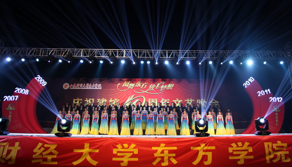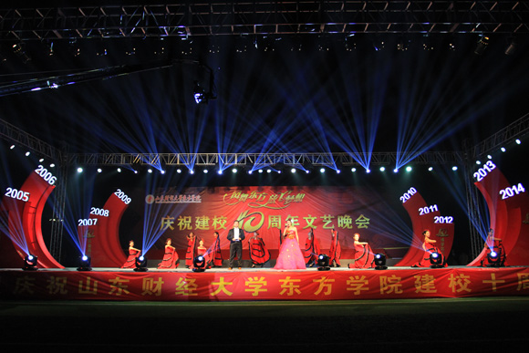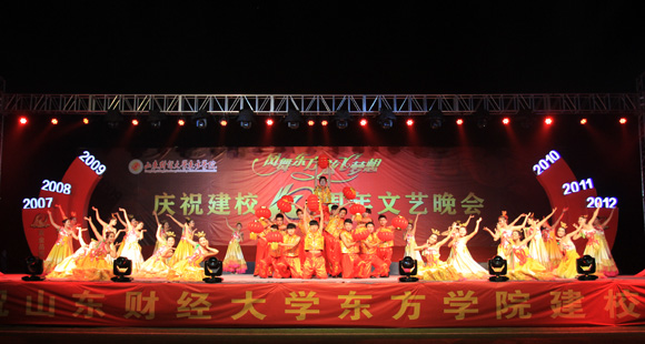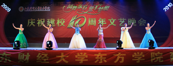 晚会分为“成长•东方”、“魅力•东方”、“筑梦•东方”三个乐章。岁月如歌,风雨兼程,十年的耕耘不息,孕育了东方学院的桃李芬芳;继往开来,勇创佳绩,十年的锐意进取,成就了东方学院的荣耀辉煌。多样的节目形式,呈现了东方学院十年的历史、全校师生的精神状态和对学校的热爱,反映了山财品质、黄金血脉的优良传承,全面展现了东方学子的青春与朝气。