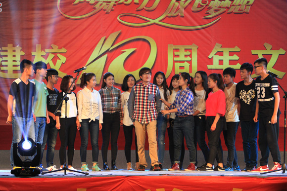 秋风送爽迎来丹桂飘香,魅力校园舞动彩旗飞扬。11月1日晚7时,“凤舞东方 放飞梦想”庆祝建校十周年文艺晚会在学校运动场隆重举行。