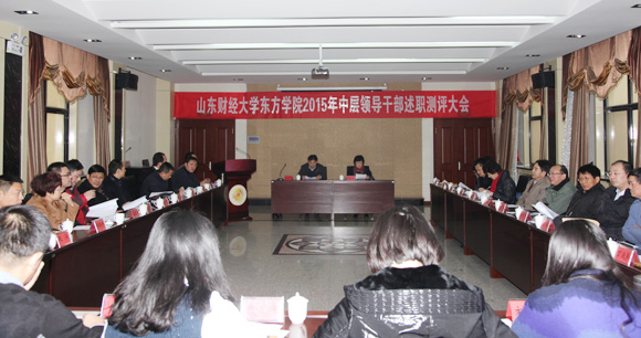 党委书记宫淑瑰结合我校目前的发展形势,对2015年度取得的成绩进行了盘点,她用“十年、稳定、和谐、发展”四个主题词总结了刚刚走过的2015年。在总结中指出:东方学院历经十年创业路,这十年是东方学院从无到有,从“听取蛙声一片”,到魅力四射的十年;是所有东方人筚路蓝缕、艰苦创业的十年;是校企双方高度融合、奠定东方学院发展理念的十年,也是铭记在每个东方人心中的十年。全体东方人的砥砺前行、开拓进取,学校各方面工作都取得了长足进步。宫书记展望了学校“十三五”的建设规划,并对数字化校园建设、图书馆综合楼改建、增建学生公寓、扩大招生规模、增建信息楼、创办创新创业学院、职员制改革等工作进行了简要说明。同时对加强党风廉政建设、严守工作纪律等问题做出了重要指示:首先,全体党员干部要坚决遵守中央八项规定要求,带头学习《中国共产党廉洁自律准则》和《中国共产党纪律处分条例》,自觉筑牢遵规守纪的思想防线,争做一名清正廉洁、忠职守则、勇于作为、敢于担当的好干部;其次,要严守工作纪律,遵守工作程序,坚守职业道德,不断改善工作方式方法,规范自己的言行举止,坚决抵制歪风邪气,杜绝一切有损学校声誉的不当行为,塑造风清气正的和谐氛围,凝心聚力搞建设,推动学校的稳步发展;再次,要树立大局意识,以促进学校持续稳定发展为己任,坚持“大河有水小河满,大河无水小河干”的理念,认真履行岗位职责,为学校的持续发展增砖添瓦;最后,全体中层干部要做好相关政策及会议精神的解读、解释和宣传工作,带头学习领会会议精神,做到零距离、无障碍沟通,在广大教职员工中传递正能量。