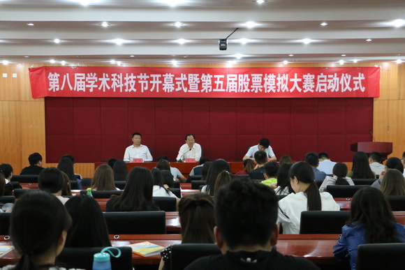 最后,王伟处长宣布第八届大学生学术科技节开幕,并代表学校向参加本届股票模拟大赛的同学授予启动资金。