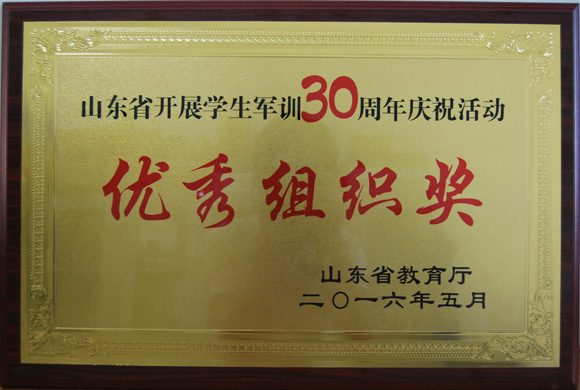5月24日-26日,山东省国防教育工作会议在济南召开。会上,对2015年国防教育活动开展情况进行了表彰。我校荣获全省开展学生军训30周年庆祝活动优秀组织奖。此次评选全省共有31所高校获此殊荣。