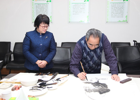 我校党委书记宫淑瑰向书画家们的光临指导表示了热烈的欢迎,并向大家简要介绍了学校的基本情况。随后,书画家们挥毫泼墨、现场创作。三个小时的创作活动中,书画家们情之所至,顺其自然,妙笔生辉,一幅幅风格迥异的书画作品在艺术家的笔下诞生。