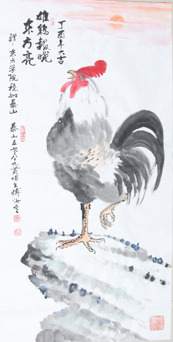 傅汝有作品《雄鸡报晓 东方亮》,祝东方学院稳如泰山