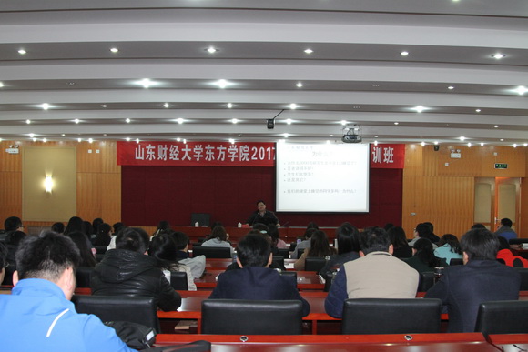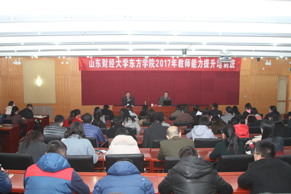 3月4日,我院在唯美楼国际报告厅举办2017年教师能力提升培训班,培训主要围绕提升青年教师科研能力和规范教师教学管理进行。本次培训分别邀请到山东财经大学金融学院教授、博士生导师张雪莹教授和公共管理学院行政管理系张宝峰主任入校进行指导。全体专职专任教师参加培训,培训班由办公室主任、组织人事处处长江东同志主持。