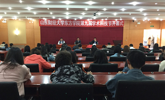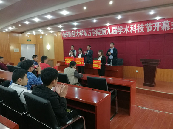 最后,王伟宣布山东财经大学东方学院第九届大学生学术科技节开幕,并向参加股票模拟大赛的同学授予启动资金。
