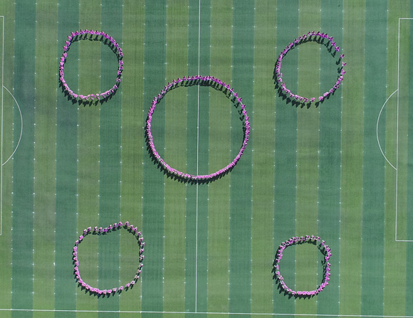 花瓣捧在手里,笑意盈漾在脸上,300余名同学组成的团体操表演绘成五瓣旋转的金花,在阳光底下翩翩舞动,舞出飞扬的青春,为运动会的顺利举办献上祝福。
