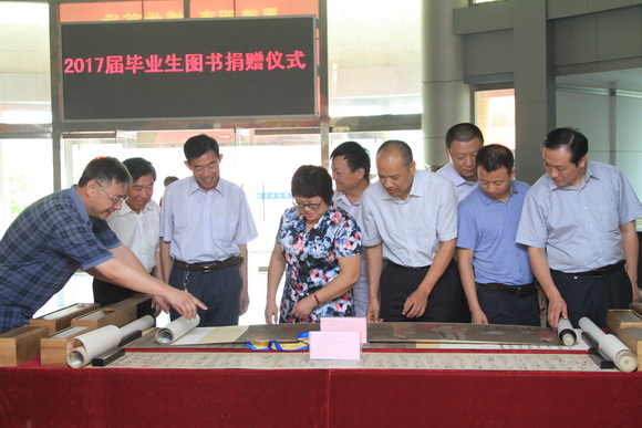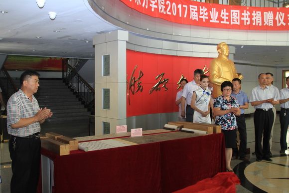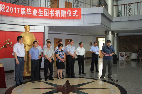 6月22日上午,我校2017届毕业生留念工程图书捐赠仪式在坤元楼大厅举行。党委书记宫淑瑰,副院长杨子华、各部门负责同志和毕业生代表们出席了揭幕仪式。仪式由学团工作处处长王伟主持。
