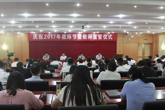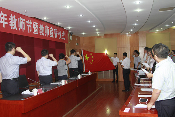 “忠诚人民教育事业,贯彻党的教育方针,履行教师神圣职责;立德树人,为人师表;勤勉敬业,严谨治学;因材施教,注重实践;廉洁从教,乐于奉献;终身学习,勇于创新;传承山财血脉,铸就东方精神。为祖国培养优秀人才,为中华民族伟大复兴奋斗终生!” 9月6日下午,我校庆祝2017年教师节暨教师宣誓仪式在唯美楼国际报告厅隆重举行,全体与会教师在国旗面前庄严宣誓。