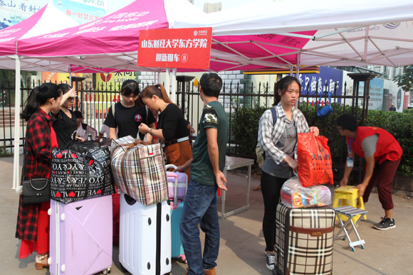 “亲,你已经被东大签收,好评哦”、“接过你的行囊,你们就是东大人了”、“我望眼欲穿的等待,终于看见你的笑脸”……9月15至16日,山东财经大学东方学院校内主干道挂满了一系列特色各异的迎新条幅,喜迎来自全国各地的2017级新生报到入学。