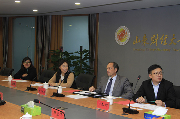 陈磊董事长首先致辞,对远道而来的Hugh Bigsby教授、Jason Ho先生表示热烈欢迎,同时表示今天是非常重要的一天,时值中国共产党第十九次代表大会胜利闭幕,非常感谢来宾们能在如此重要的一天来访我校。随后宫院长为来宾详细介绍了我校的办学历史、发展概况、专业设置以及当前学院国际交流合作的现状,并希望双方在未来能有更好的合作,为学生提供更好的发展机会。