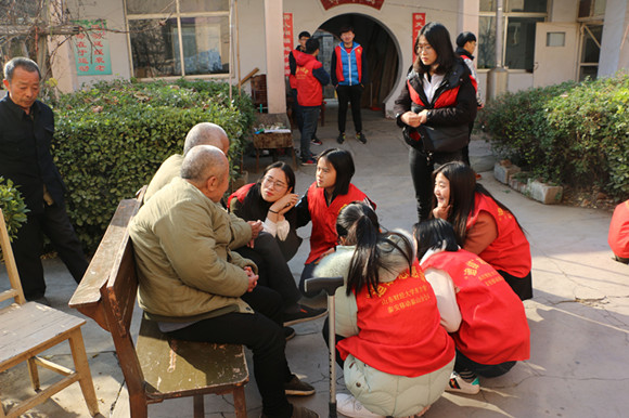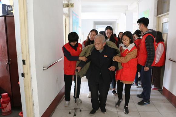 为深入学习宣传贯彻党的十九大精神,引导团员青年自觉用习近平新时代中国特色社会主义思想武装头脑、指导实践,切实增强“四个意识”、坚定“四个自信”,11月12日上午,校学生会实践服务部举办“关爱空巢老人——听爷爷讲革命”学习党的十九大精神志愿服务活动。校学生会实践服务部全体成员、fly助力协会以及招募的各系志愿者们参加活动,去徐家楼敬老院听革命老人讲故事并给老人送去志愿服务。