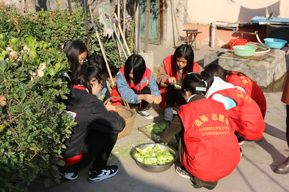 初冬季节,志愿者为老人们开展了一些力所能及的志愿服务活动,修剪树枝、择菜做饭、打扫院子、扶老人去院子里晒太阳,帮老人们整理房间物品,帮老人按摩、为老人们递上水果,给老人们送去了温暖。活动间隙,志愿者们唱了《我的祖国》,《没有共产党就没有新中国》等歌曲,再加上几段精彩的舞蹈,让老人度过了一段愉快的时光。