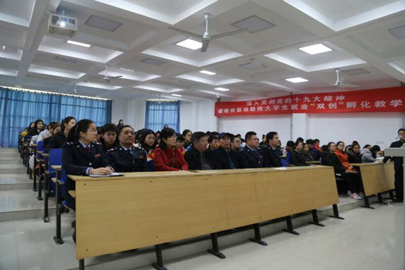12月6日下午,由泰安市地方税务局高新技术产业开发区分局主办、我校财政金融系承办,深入贯彻党的十九大精神暨税校联动助推大学生就业“双创”孵化教学讲座在我校唯美楼5405教室举行。我校财政金融系主任安起光教授主持讲座,泰安市高新区地税局副局长李惠新、山东正大税务师事务所所长王中刚出席讲座。