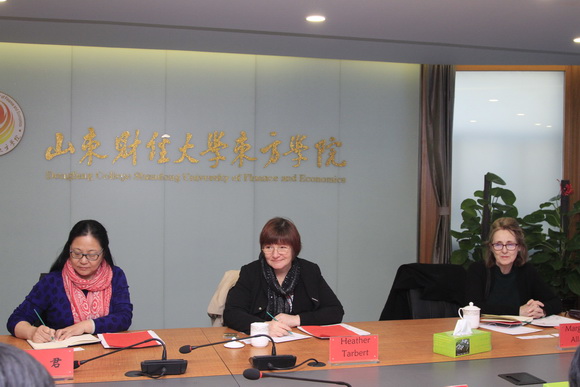 宫院长首先致辞,对远道而来的Heather Tarbert教授、Margaret Allan教授和陈君女士表示热烈欢迎,并为来宾播放了我校的视频短片,全方位多角度的展现了我校的蓬勃发展。陈君女士对我方的欢迎表示衷心感谢,并为我方详细介绍了西苏格兰大学的发展史、学院设置、专业认证、明星学科以及学校的硬件设施等,使我方对西苏格兰大学有了更深入直观的了解。双方还就两校可合作的具体项目:2+2、3+1、寒暑假游学、访问学者等在学分互认、语言要求、专业对接等方面进行了交流。宫院长表示非常认可西苏格兰大学与我校的合作项目,希望能双方能持续不断地推进项目,为学生提供更好的平台。