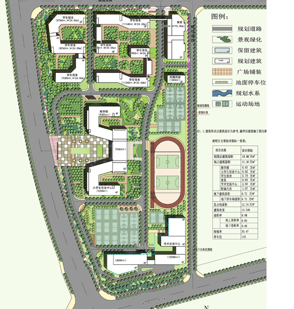 更美:校园规划本着绿色、生态、低碳、环保、集约、可持续发展的建设理念,一条“公共生态绿脉”贯穿东西,结合中心景观与绿化隔离带架构其整个校园的生态网络,形成对内通过水体、广场、绿化向两侧渗透,对外形成与外部环境的缓冲空间与交流空间,从总体上构成“对内包容,对外开放”可持续发展的景观生态格局,干道和绿化甬道曲直相济,路景结合,步移景异,使师生徜徉其中,尽情吸取知识的营养,激发创造的情愫。