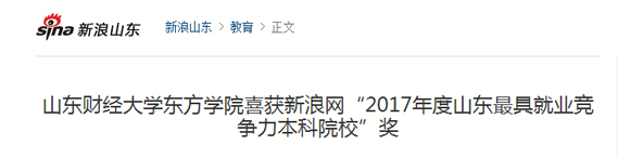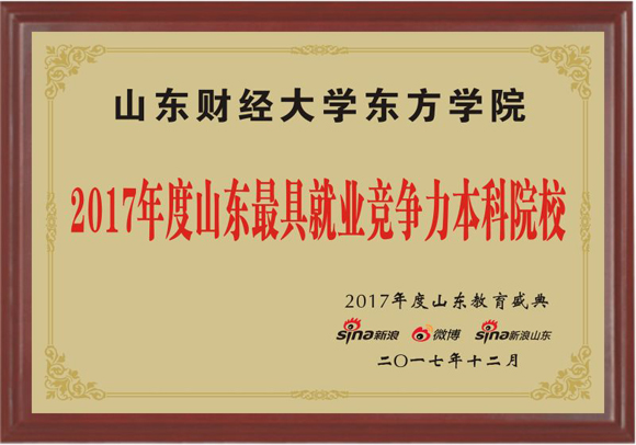 近日,2017年度山东教育盛典荣耀榜单盛大发布,我校喜获“新浪网2017年度山东最具就业竞争力本科院校”奖项。