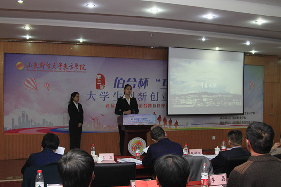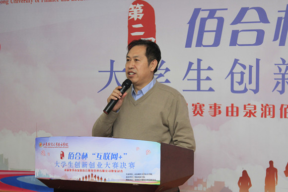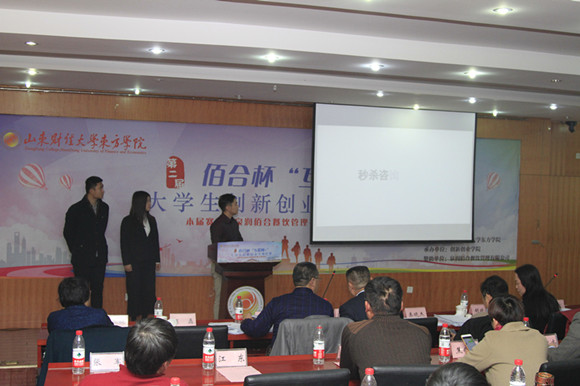 12月20日下午,我校第二届佰合杯“互联网+”大学生创新创业大赛校级总决赛在国际报告厅圆满落幕。润华集团股份有限公司监事长兼纪委书记、党委副书记秦晓杰,佰合集团执行总裁段树生,山东科技大学硕士生导师、创新创业导师胡晓清,泰安高新区融智汇众创空间运营总监、泰山创新创业导师团副秘书长张圣军,山东一平尺文化传播有限公司总经理徐尘应邀担纲本届赛事评委。我校董事长陈磊,院长、党委书记宫淑瑰出席本次大赛,30多位企业家及部分师生到场观看了比赛。宫淑瑰、段树生分别为大赛致辞。
