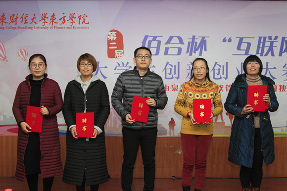 经过专家评委严格评选,“淘淘享线上导购平台”项目荣获大赛金奖,“安鸽户外大学生联盟”、"纤巧民俗手工坊"项目荣获银奖,“ATC共享度假庄园”等5个项目荣获铜奖,“ATC共享度假庄园”同时荣获最具人气奖,杨希、高爱霞、凌瑶三位老师荣获优秀指导教师奖,工商管理系荣获优秀组织奖。秦晓杰代表评委组对我校参赛项目进行了精彩点评,充分肯定了选手们在比赛的精彩表现,同时也指出了选手们在项目创意、项目路演、答辩及项目计划书撰写等方面存在的诸多问题,并给出了合理建议。竞赛期间,组织人事处处长江东代表学校宣读了《关于聘任第二批大学生创新创业导师的决定》,聘任段树生等43人为我校大学生创新创业导师,聘期两年,宫淑瑰为他们颁发了聘书。