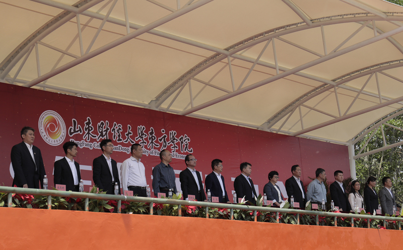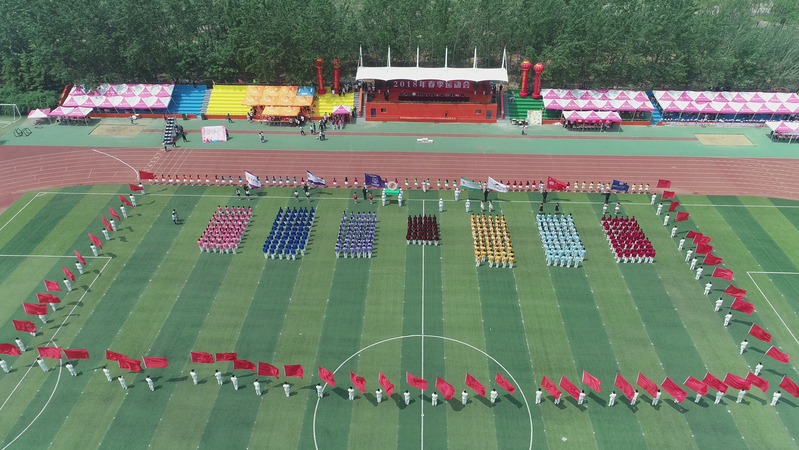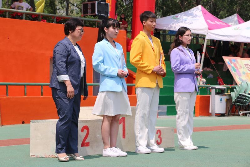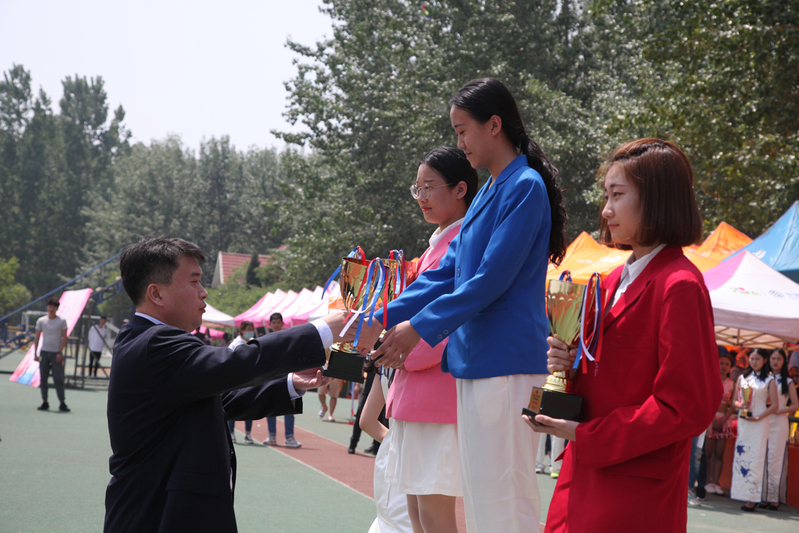 在彩旗和鲜花引导下,运动员、裁判员各方队入场。运动会副总裁判长、基础教学部副主任郭书胜宣布团体比赛成绩,大会精神文明评委会主任、学生工作处处长王伟宣布精神文明奖、优秀组织奖、啦啦操比赛获奖单位名单。