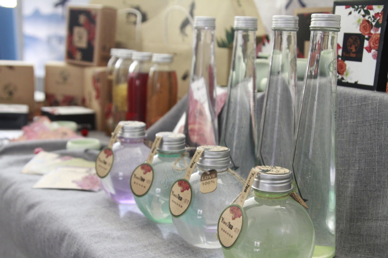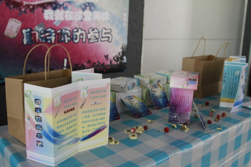 在高低大小不一、形状各异的茶具和包装饰品前,学生张力允向记者介绍了她的毕业作品“一味茶”:“一味茶”的包装设计从茶饮从天然、营养、保健的品质特点出发,运用AI网格技法和low poly低边面设计新潮,使得设计更加新颖、丰富、大度而且简洁,红黄绿三个基本色的运用,透漏出时尚、清新、活泼的时代气息,色彩丰富且不凌乱,迎合了当下绿色、安全、保健的消费理念。