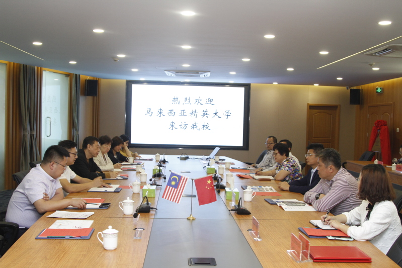 5月24日,马来西亚精英大学校长陈德鸿博士、副校长胡玉凤女士在精英大学中国常务理事张亮先生,校长助理、中国留学生事务委员会负责人黎淑珍女士陪同下来我校访问,院长宫淑瑰、党委书记耿金波在第一会议室热情欢迎陈德鸿一行。宫淑瑰介绍了学校近期建设发展情况,与张亮签订了《战略合作谅解备忘录》。马来西亚精英大学中国办公室主任张锐、市场部陈雯,我校办公室主任、国际交流中心主任江东,教务处处长宋凯明,学团工作处处长王伟,即将赴马来西亚精英大学攻读博士学位的教师参加活动。