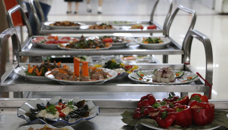 为保证比赛的顺利进行,当天下午,学校饮食服务中心已根据学生要求准备好各种食材和调味品,等着学生们一展身手。