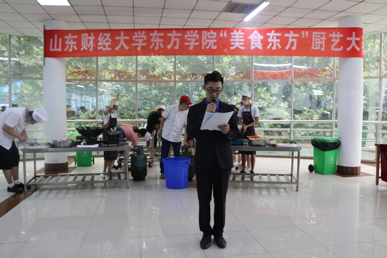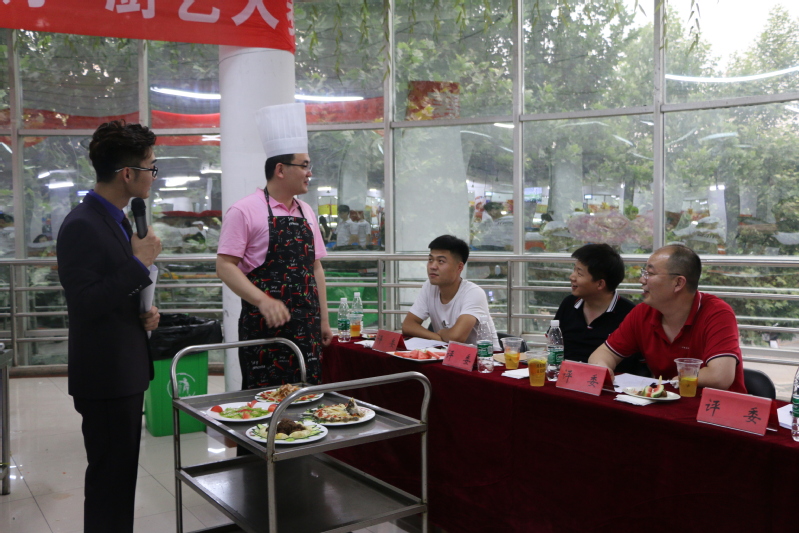 6月7日晚,由总务处和学生工作处联合举办的“美食东方”厨艺大赛在学生餐厅进行,工商管理系、人文艺术系、国际商务系、财政金融系、会计学系5个学生代表队和1个教师代表队参加比赛,最终工商管理系代表队凭着色香味俱全且创意十足的“鱼跃龙门”等四道菜夺得冠军。副院长毕宏伟到现场观摩指导。