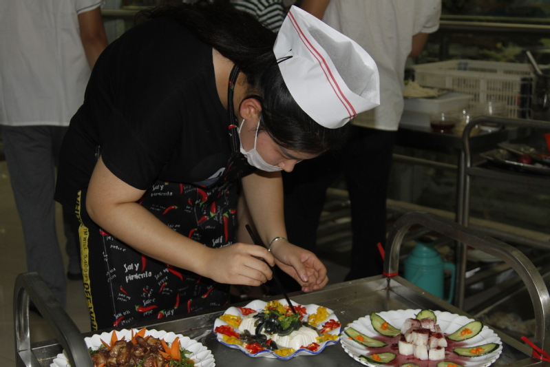 比赛中,学生们熟练地切菜、爆炒、蒸煮,动作娴熟、配合默契,一道道精致菜品陆续呈到评委席,菜香溢满整个活动现场,评委们现场试吃,从营养、心态、质感、色泽、香气、味感、创新7个方面进行了综合评定。