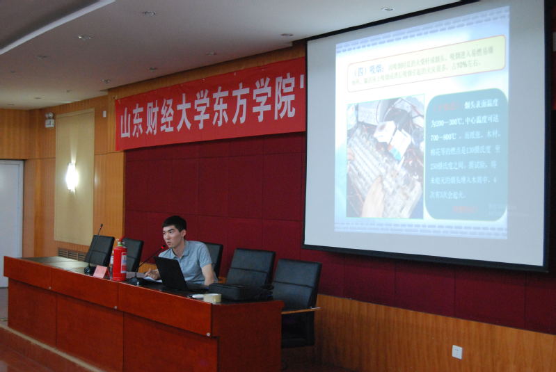 为认真落实开展“全国安全生产月”和“平安校园建设提升年”的活动,创建平安校园,强化大学生的宿舍安全消防意识,提高学生的自防自救能力,学生工作处于6月11日18:00在国际报告厅举办以“隐患险于明火,防范胜于救灾,责任重于泰山”为主题的消防安全知识讲座。此次讲座由泰安市金盾消防技术服务中心主任王伟主讲。