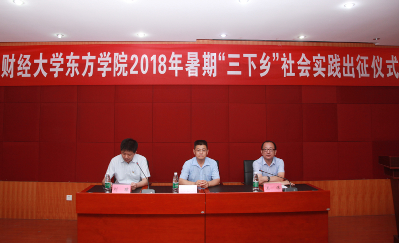 7月13日, 2018年山东财经大学东方学院暑期“三下乡”社会实践活动出征仪式在唯美楼国际报告厅举行,11支团队将在15号启程,前往广西河池、山东沂水、山东宁阳、贵州遵义、山东临沂等,进行为期11天的社会实践、义务支教活动等,他们将在深入社会、了解农村、接受锻炼的过程中培训实践和动手能力。