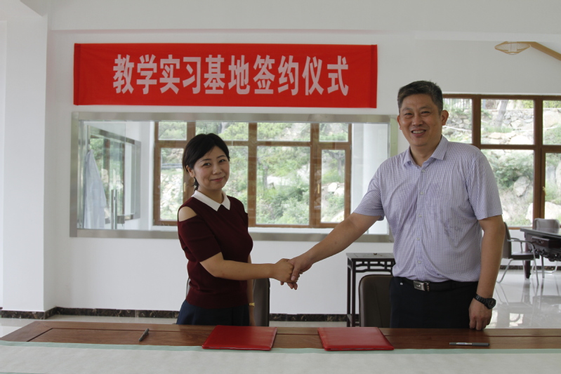 签约仪式上,山东财经大学东方学院院长宫淑瑰与双宁茶叶有限公司总经理田双双互相介绍了双方基本情况,共同为教学实习基地揭牌,教务(科研)处处长宋凯明与其签订教学实习基地协议。