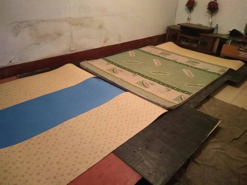 木板和瑜伽垫组成的床