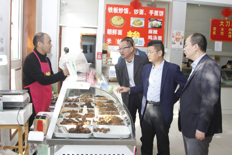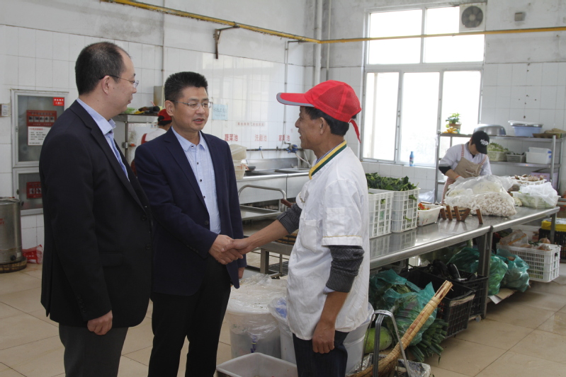 调研中,总务处负责人就食堂管理模式、服务现状及面临的问题进行了汇报,耿金波先后来到食堂仓库、后厨、饭菜加工间和服务窗口,认真了解原材料采购、饭菜加工流程、就餐环境和服务保障等工作,对总务处饮食服务中心严格管理餐饮各环节、俯下身子为师生服务给予肯定,对广大饮食服务工作人员的辛勤付出表示感谢,对餐饮经营监管和服务提出了要求。