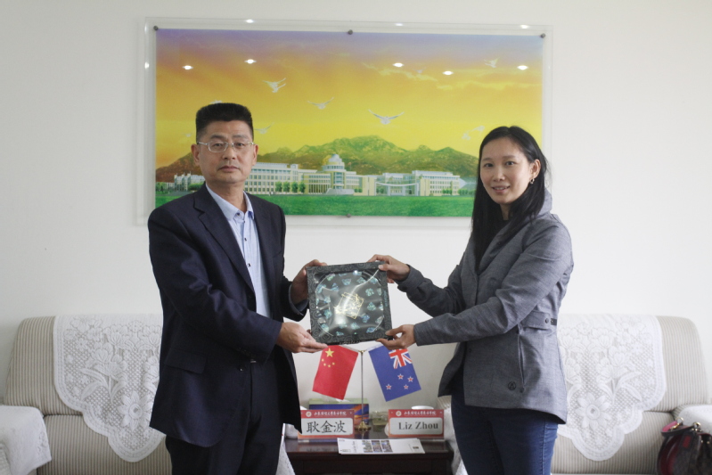 耿金波对Liz Zhou一行的远道而来表示热烈欢迎,为来宾详细介绍了我校目前的办学规模、师资和学生情况,同时就新西兰针对华人留学生的具体政策、学生赴新留学之后的工作和移民问题进行了详细了解。耿书记指出,我校与新西兰的合作已经启动,并已有专科毕业生赴新西兰商学院进行本科的学习,我们全力支持新方留学对学生在新媒体等方面的信息传达,同时希望新西兰校方可以针对我校本科大四、专科大三毕业生,尤其是对考研和专升本失利的学生,展开特殊人群的定向服务,在留学申请时间和材料准备等方面采取更便捷的方式。