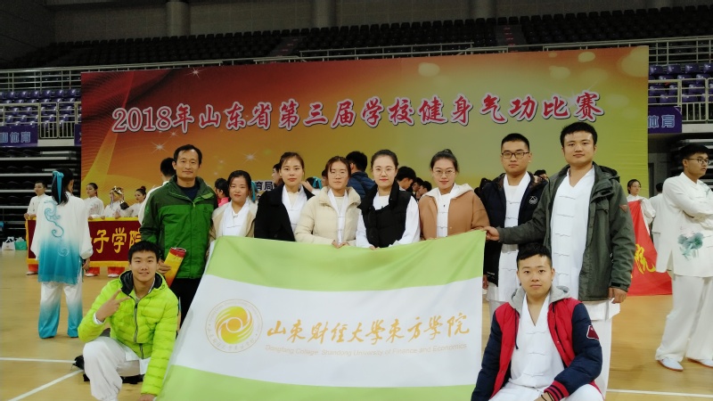 11月7日-9日,由山东省体育局、山东省教育厅主办的2018年山东省第三届学校健身气功比赛在曲阜体育馆举行,来自山东师范大学、鲁东大学、山东财经大学等全省31所学校的280余名运动员参加了本次比赛。经过激烈的角逐,我校由贾秀秀、梁其昌、张玉霞等九位同学组成的代表队获得自编项目健身气功气舞三等奖、规定项目五禽戏三等奖的好成绩。
